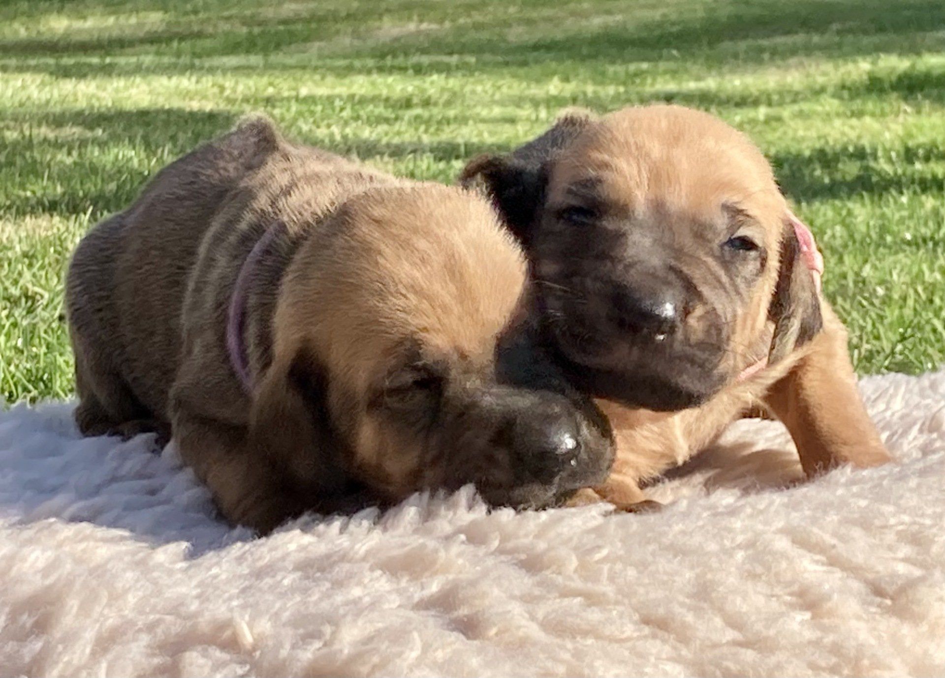 Beide sind substanzvolle, knochenstarke und wesensfeste Ridgebacks mit korrektem Exterieur.